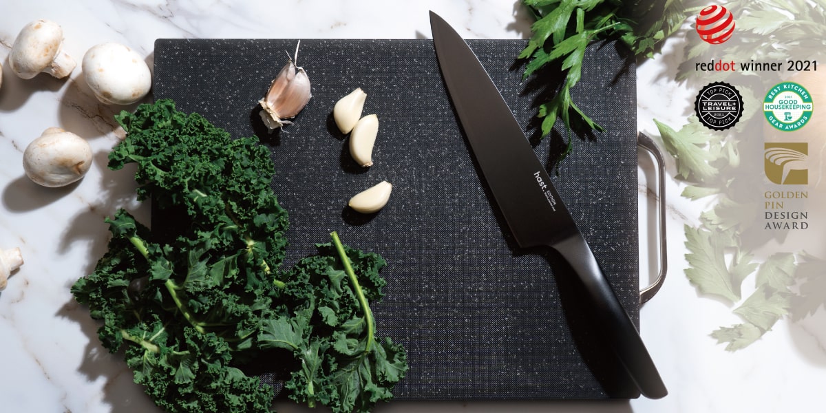 ガラスとミニマルな構造で、ナイフのデザインを引き立てるhast.ナイフブロック。固定スロットがない独自構造により、最大7本、どんなナイフでも自由にレイアウト可能。使っていない時も、インテリアのようにナイフを楽しめます。